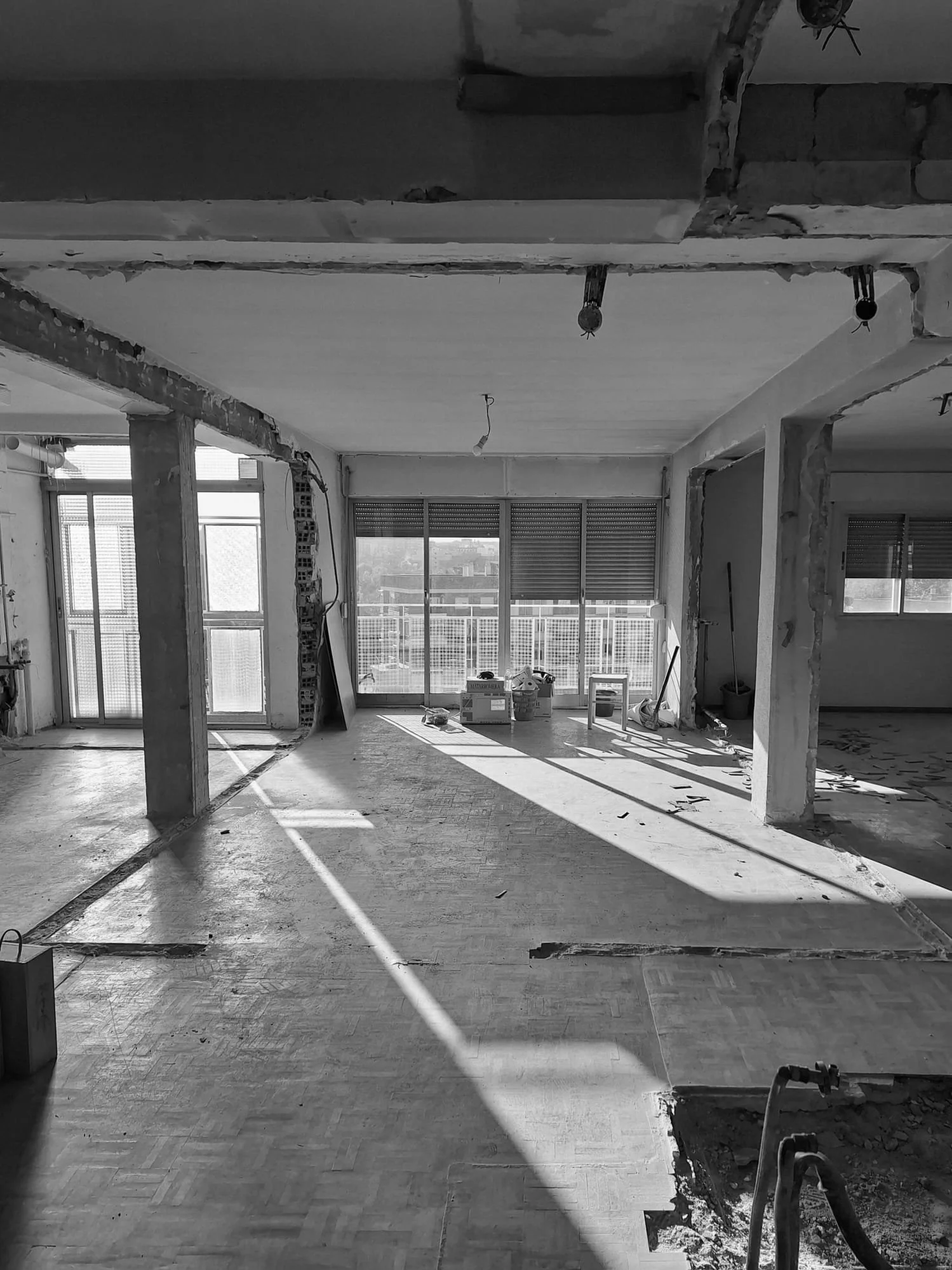 Nuestros clientes, una pareja joven y encantadora, llegaron con ilusión, confianza y ganas de ver hecho realidad su hogar ideal. La madera y los tonos naturales equilibran la presencia del hormigón visto, tratado con una sensibilidad que evita el lenguaje industrial para abrazar la sobriedad elegante. El blanco —en todas sus texturas y matices— se convierte en hilo conductor y define el carácter del proyecto.